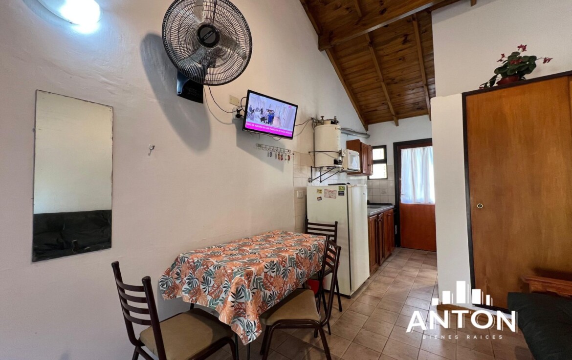 Este acogedor monoambiente es perfecto para parejas o pequeñas familias. Ofrece un luminoso living-comedor, cocina equipada, cochera dentro de la propiedad y todas las comodidades esenciales para una estadía práctica y confortable. Ideal para relajarse y disfrutar la tranquilidad de la zona.